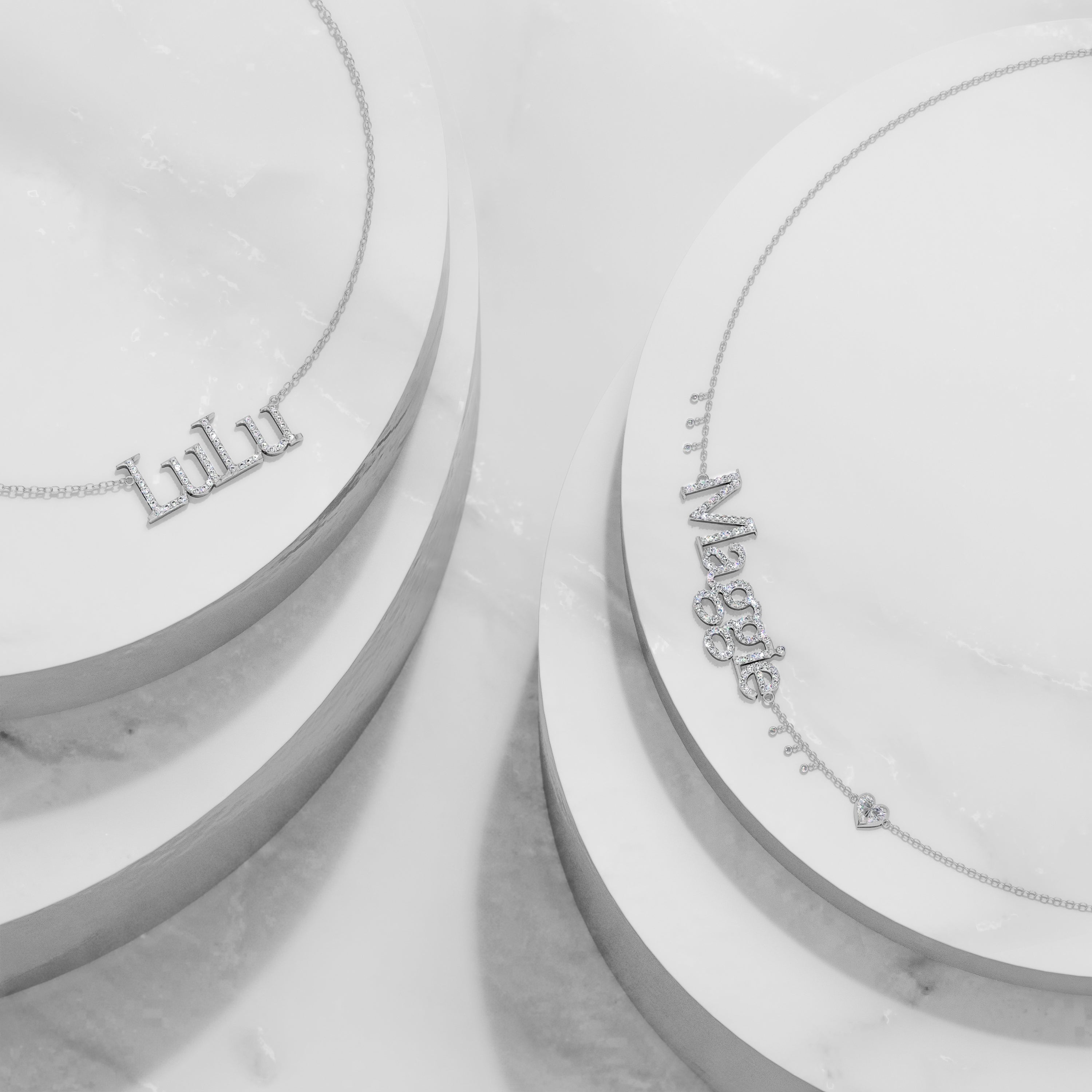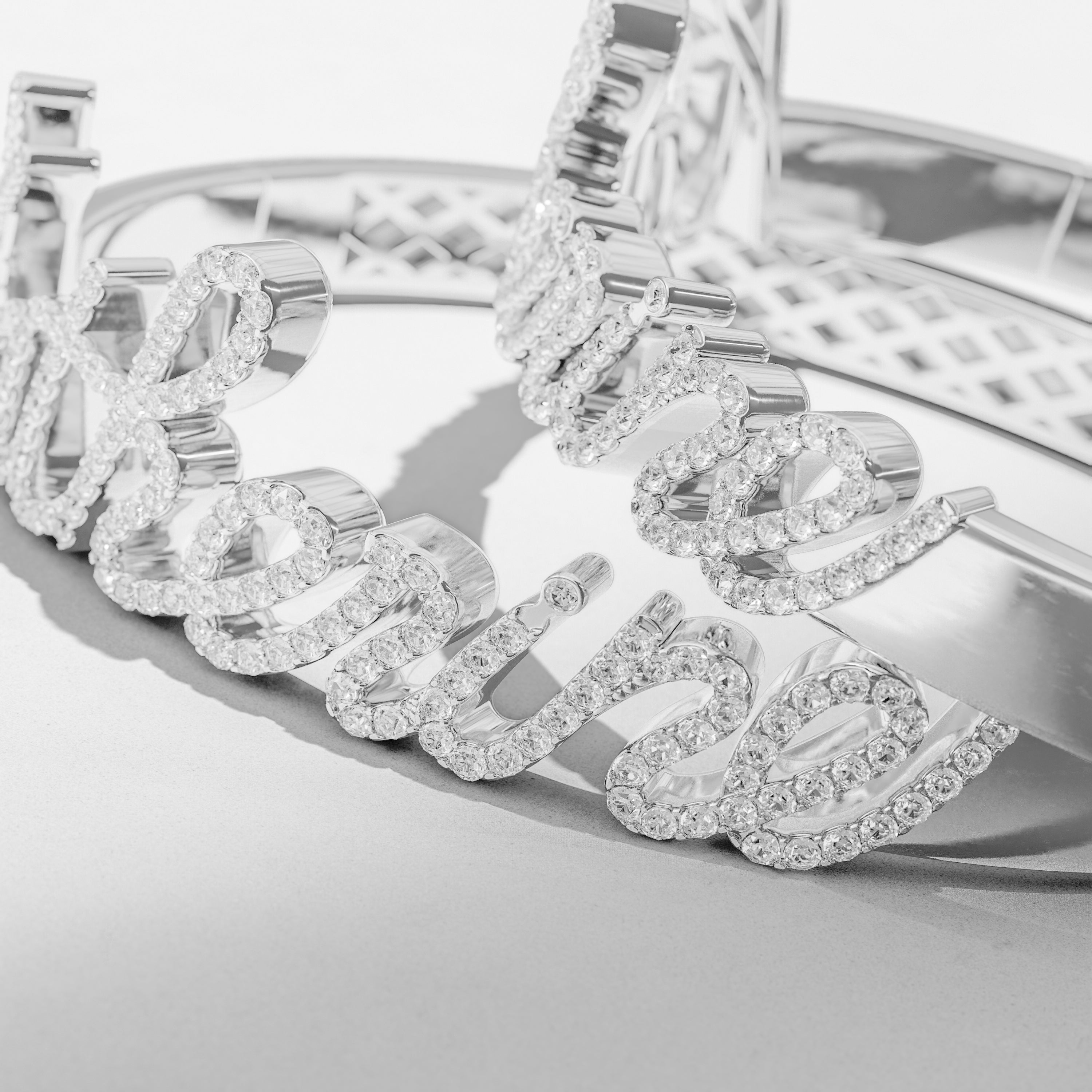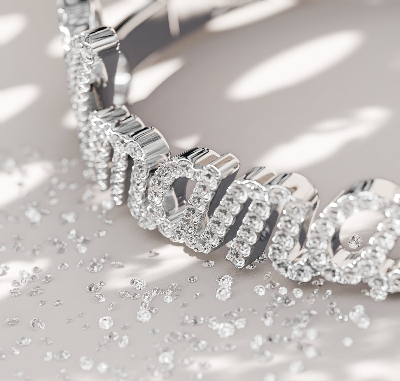 The Bespoke Signature Collection introduces a vast spectrum of customisation options. Select your preferred material, dictate the size, the shape of the diamonds, and inscribe a name or more onto any piece from our collection. Our skilled artisans are at your disposal to transform your most imaginative designs into reality, creating a piece of jewellery that's genuinely designed by you.